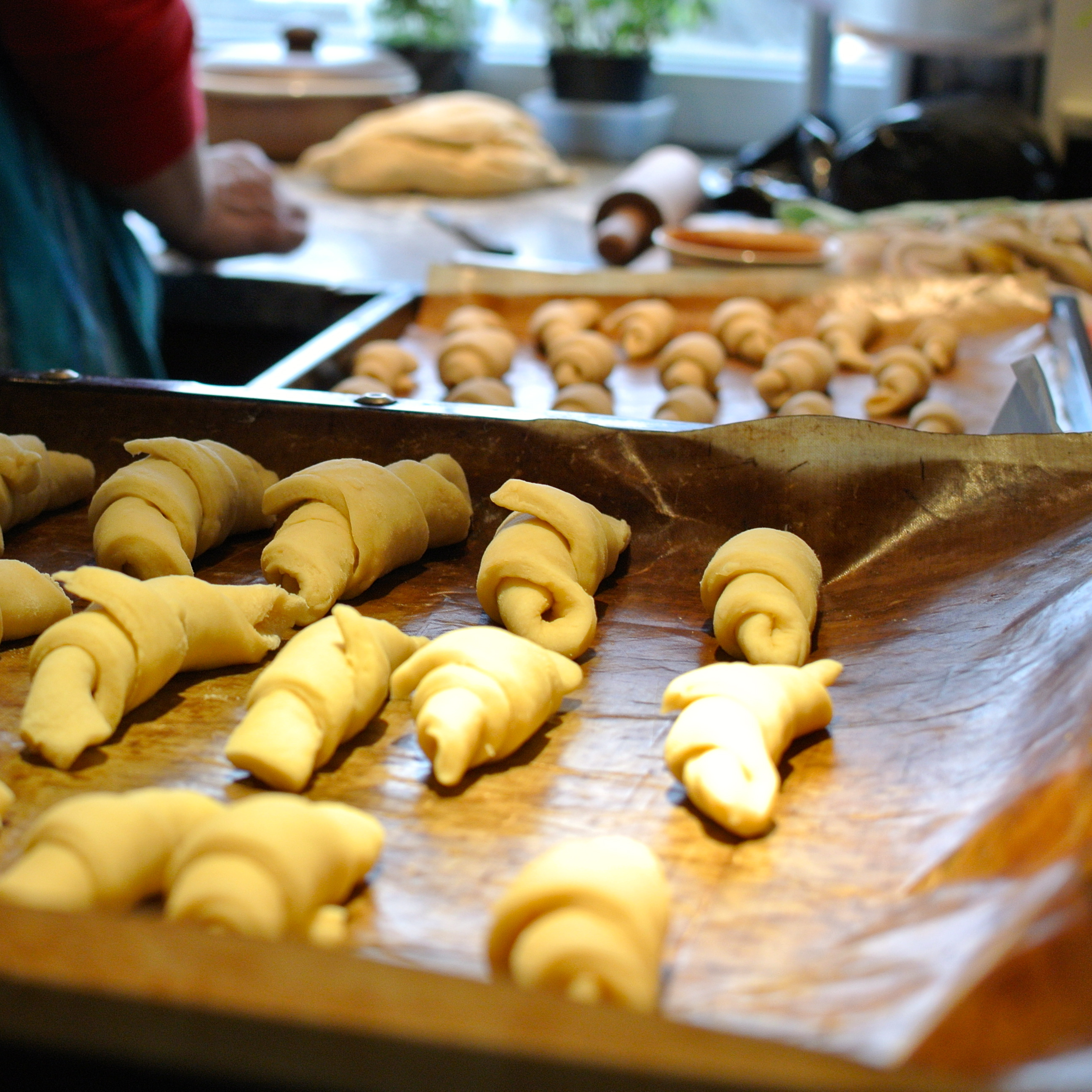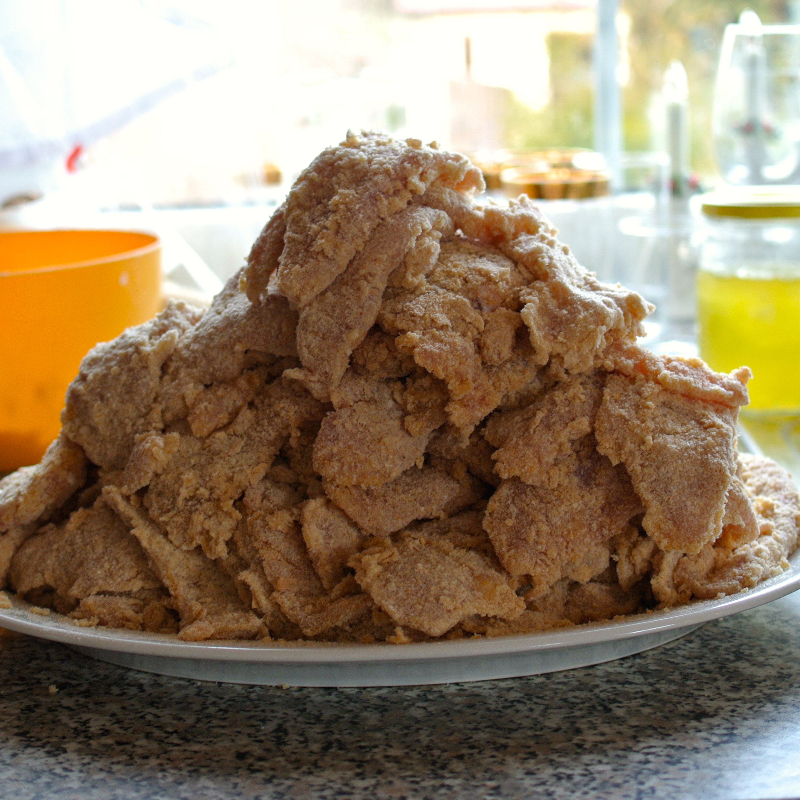 Krůtu dodává tatínek, přála bych si normální krutu cca 10 kg, ale to ne. Tatínek dodává zásadně krocana nad 15 kg, letos měl macek 18 kg. Děkuji Ondrovi, který mamuta rozboural. Krůtu pečeme osolenou, naporcovanou, dlouho přiklopenou a pak asi hodinu odklopenou, aby je pěkně opekla dokřupava. Rohlíčky se pak namáčejí do šťávy, která je v pekáči s krůtou, je to moc velká dobrota a je nutno si hlídat svůj rohlíček, jelikož vám ho soused sní, než se otočíte. Nádivku dělám jemnou s mandlemi a ke krůtě se náramně hodí. Polévka je také krůtí s domácími nudlemi, letos jsem musela dělat knedlíčky máslové, jelikož v celých Říčanech nebyly drůbeží játra.