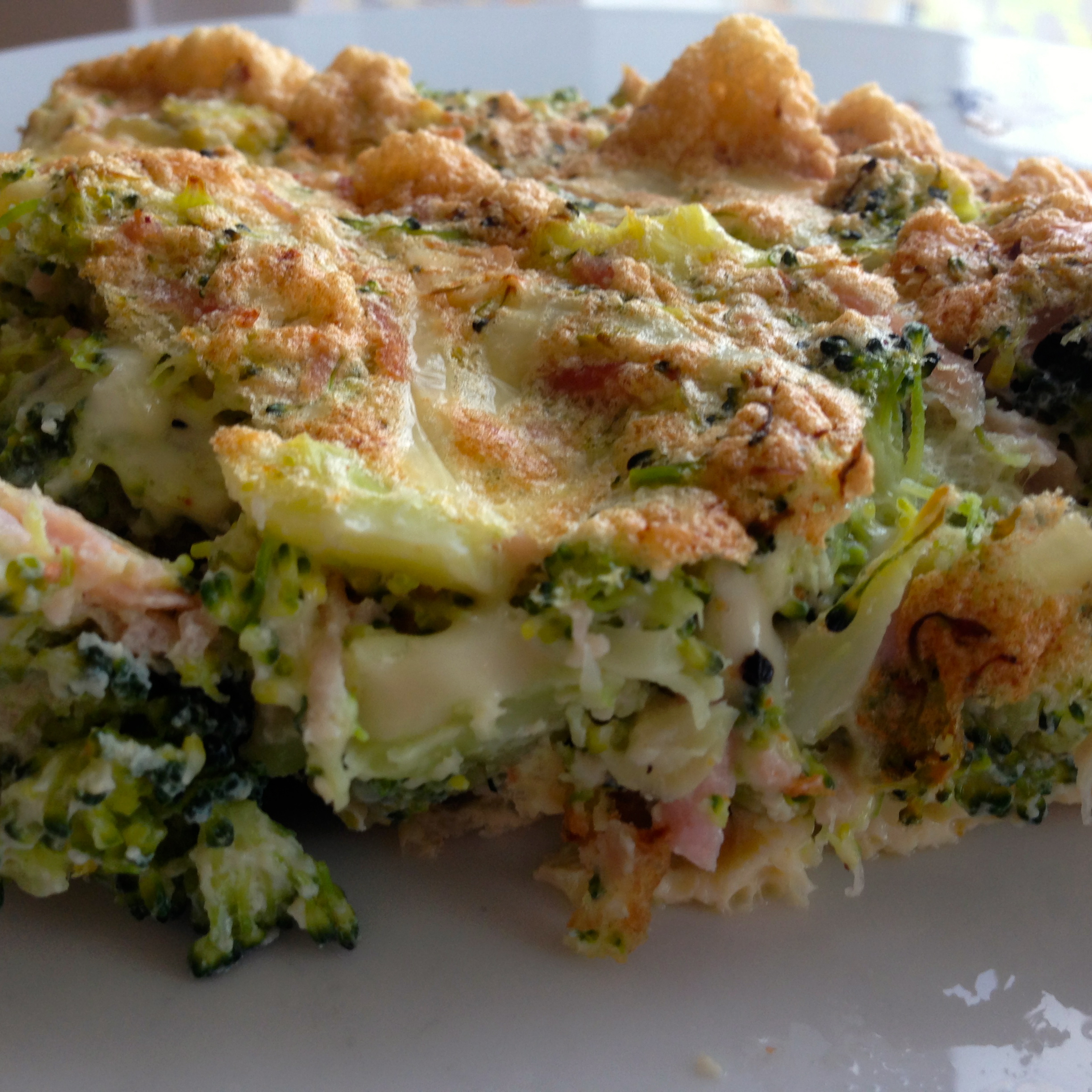 Brokolici uvařte ve slané vodě. Do mísy nastrouhejte sýr a salám, přidejte žloutky, bílky ušlehejte. K sýru a šunce přidejte nakrájenou brokolici, koření a nakonec opatrně a s láskou vmíchejte sníh z bílků a koření. hmotu dejte do nádoby vymazané máslem a dejte zapéct. nákyp je výborný teplý, ale já ho mám ještě raději, když je studený. A nejíte žádné zbytečné škroby!